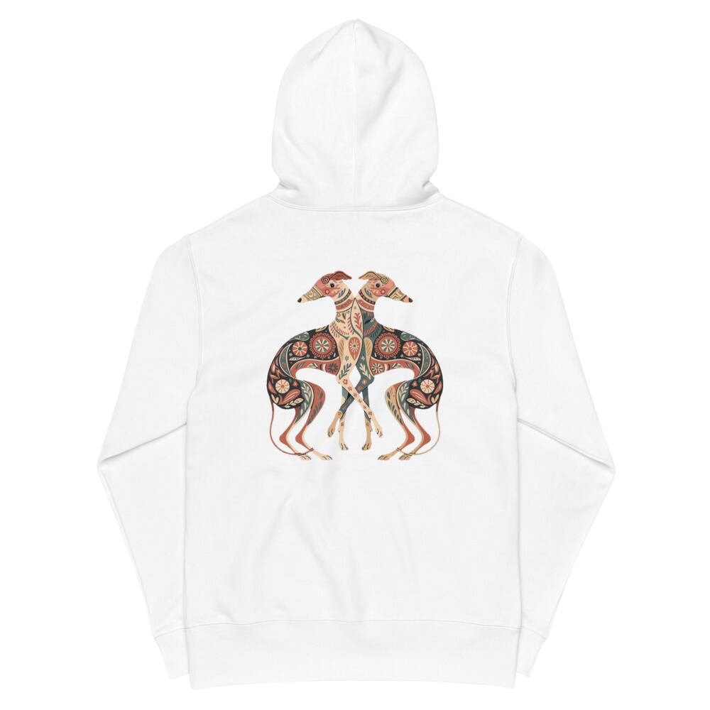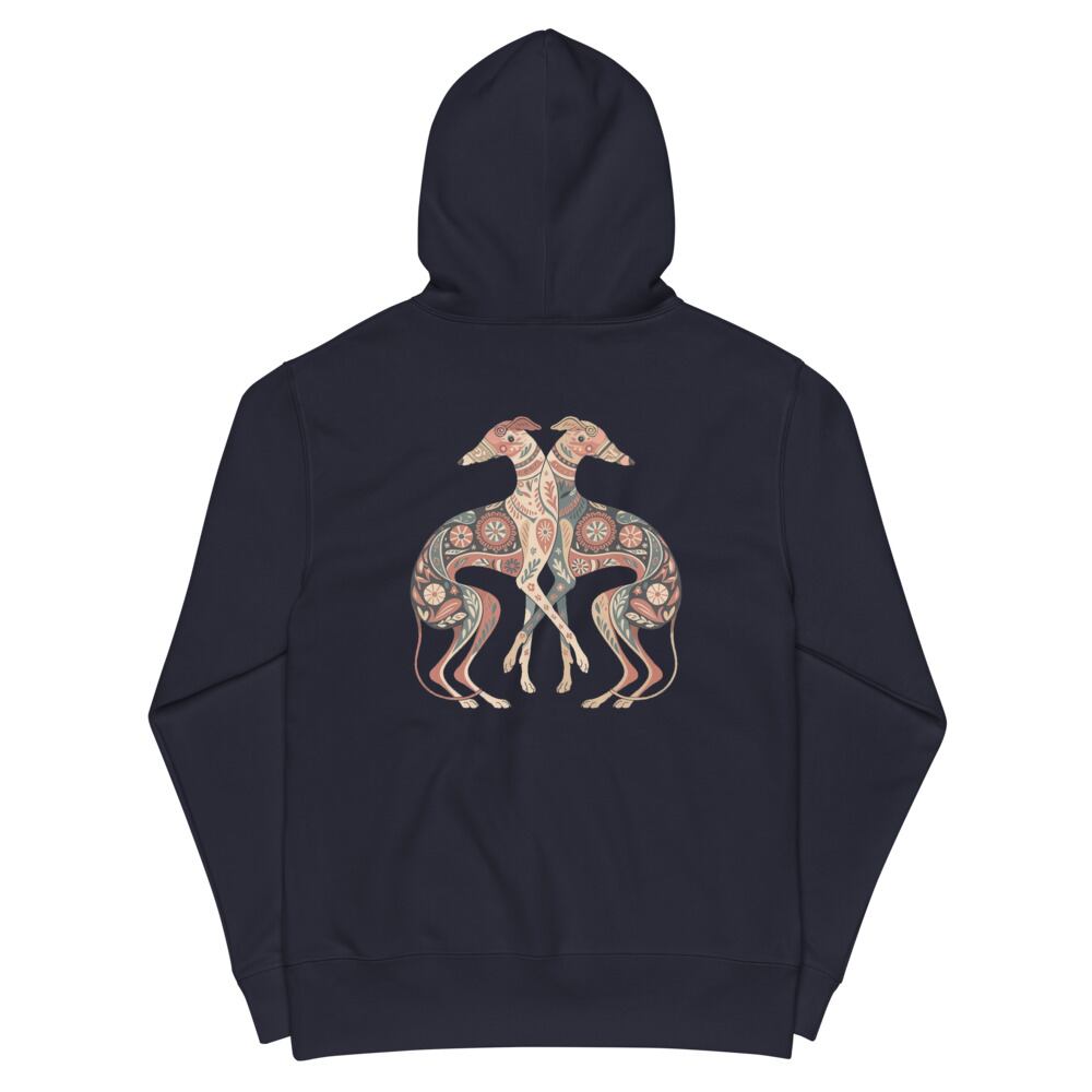 鏡像のように絡み合った2匹のイタグレのシルエットに複雑な花柄と幾何学模様を描き、伝統的な民族模様の雰囲気を取り入れました。 寄り添うようにも踊っているようにも見えるイタグレたちが個性的なデザインの主役です♪ 伸縮性のある柔らかな着心地の裏毛を使用し着心地のよいパーカーです。 ワードローブの定番アイテムになること間違いなし♪ 【サイズ】 S 着丈63 胸幅52 袖丈56 M 着丈67 胸幅55 袖丈60 L 着丈71 胸幅58 袖丈61 XL 着丈76 胸幅63 袖丈 62 XXL 着丈81 胸幅68 袖丈63 ※単位:cm ※本商品の掲載サイズはメーカー提供サイズとなります。 サイズ表記につきましては、約1~3cmの誤差が出る場合がございます。 【素材】 • 綿100% ※お取り扱いの注意 本製品はプリント加工を施しております。 長くご愛用いただくために、乾燥機のご使用はお控えください。 高温によるプリントの劣化や剥がれの原因となる場合がございます。 洗濯後は形を整えて陰干しすることをおすすめいたします。 【カラー】 ブラック ネイビー チャコール ホワイト 【お届けについて】 ご注文をお受けしてから、1枚ずつ丁寧にお作りしているため、 お届けまで1週間~2週間お時間をいただいております。 (土日祝・長期休暇を除く) ※生産状況や天候、交通事情等で納期が前後することがあります。 【人気商品をチェック♪】 https://official.ig-goods.com/categories/6575560 【新作商品はコチラ↓】 https://official.ig-goods.com/categories/6575559 ———————————— ご購入前にこちらをお読みください → https://official.ig-goods.com/about#guide ———————————— ■□公式LINEのお友達登録で、初回購入時にご利用いただけるクーポンをプレゼント!□■