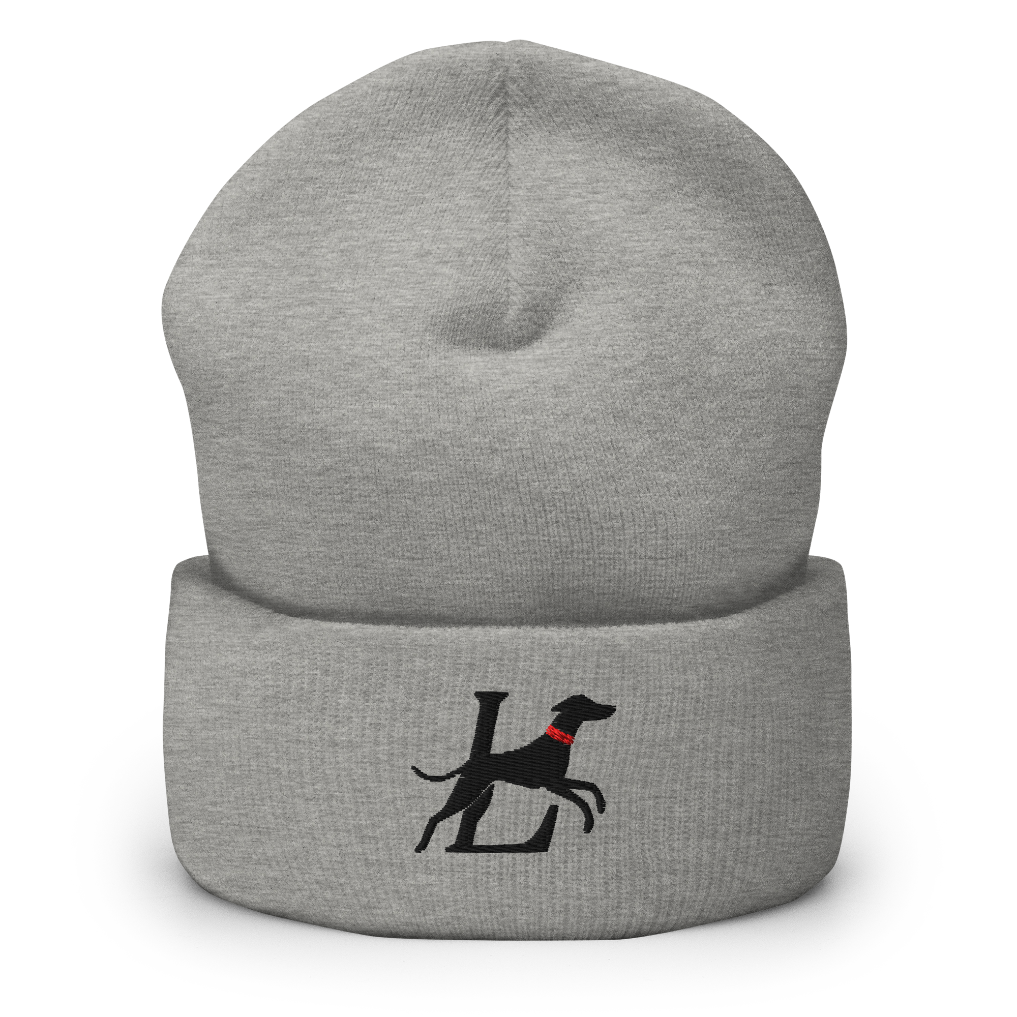 Lの文字を駆け抜ける、しなやかなイタグレの刺繍シルエット。