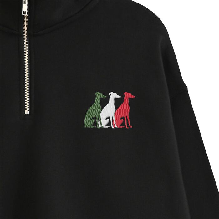 トリコロールカラーのイタグレシルエットを大きめに刺繍で♪