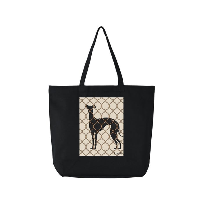 格子の奥に静かに佇むイタグレをアートのように切り取り、モダンな幾何学模様とシルエットのコントラストが、上品でミステリアスな存在感を放つアートデザインです。