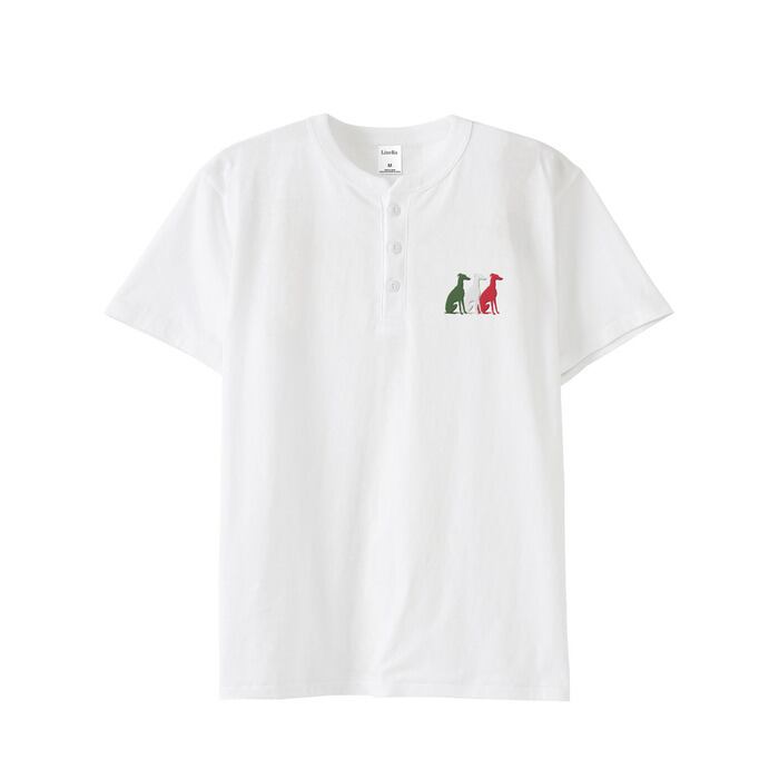 トリコロールカラーのイタグレシルエットを大きめに刺繍で。